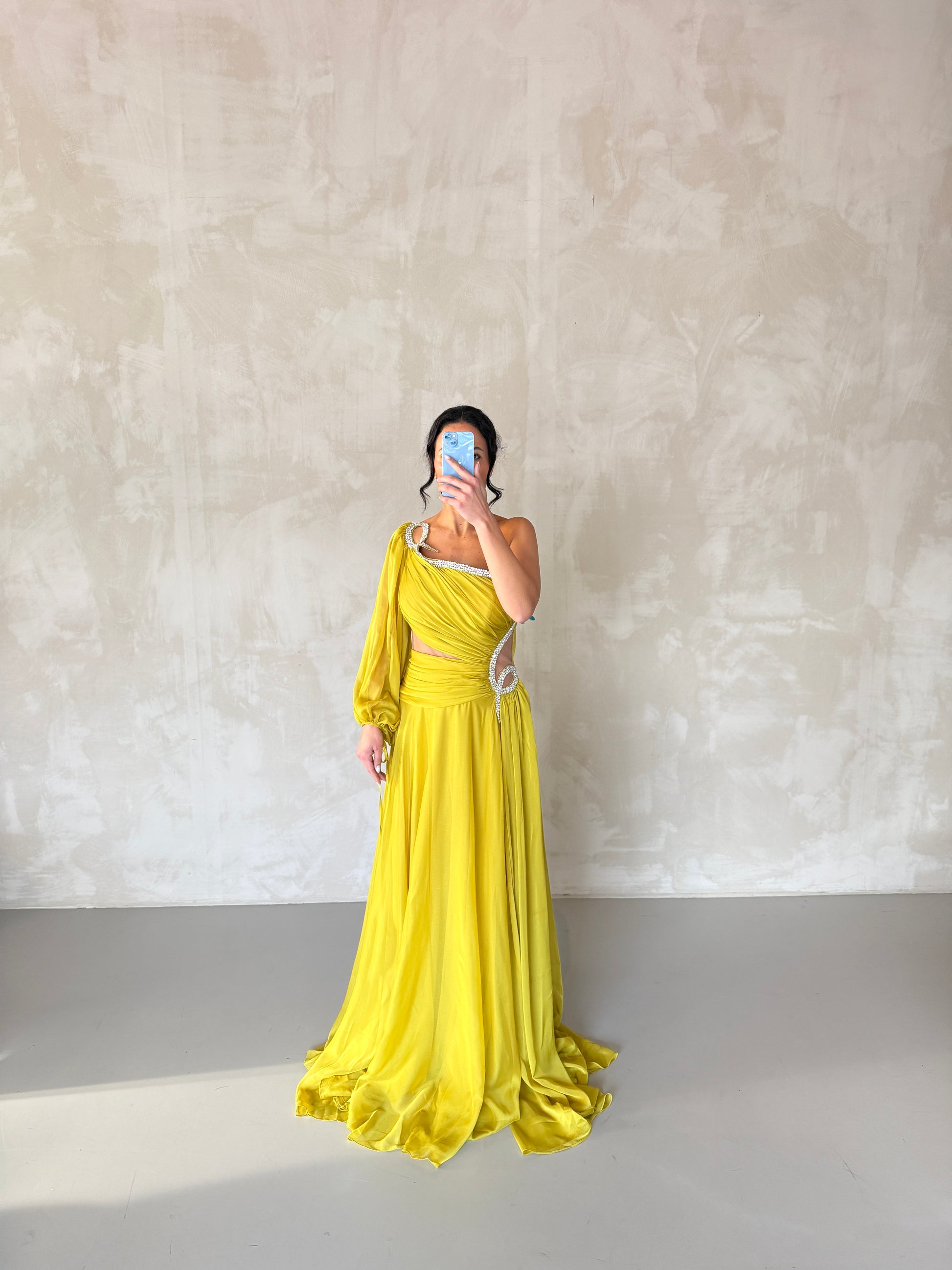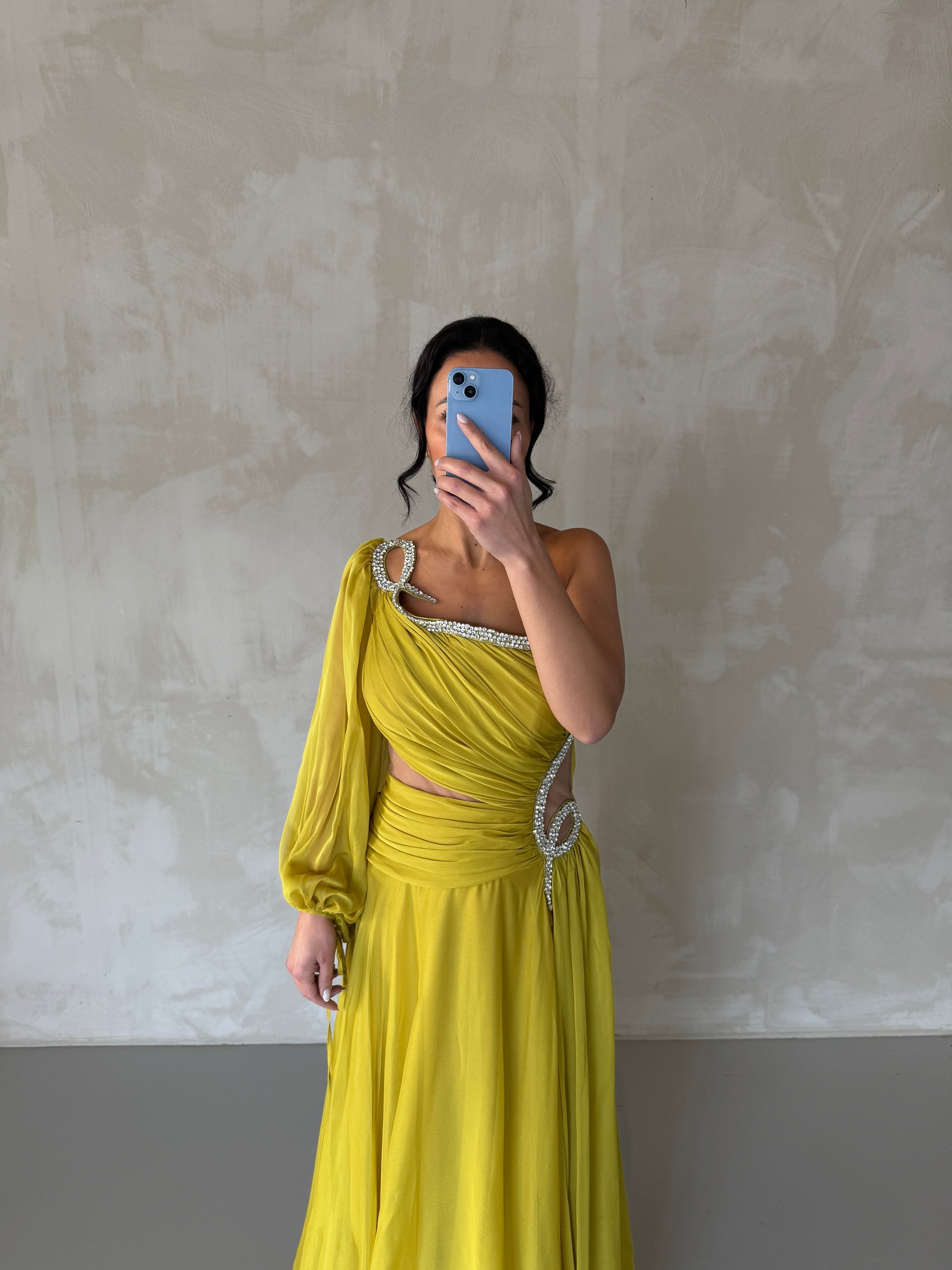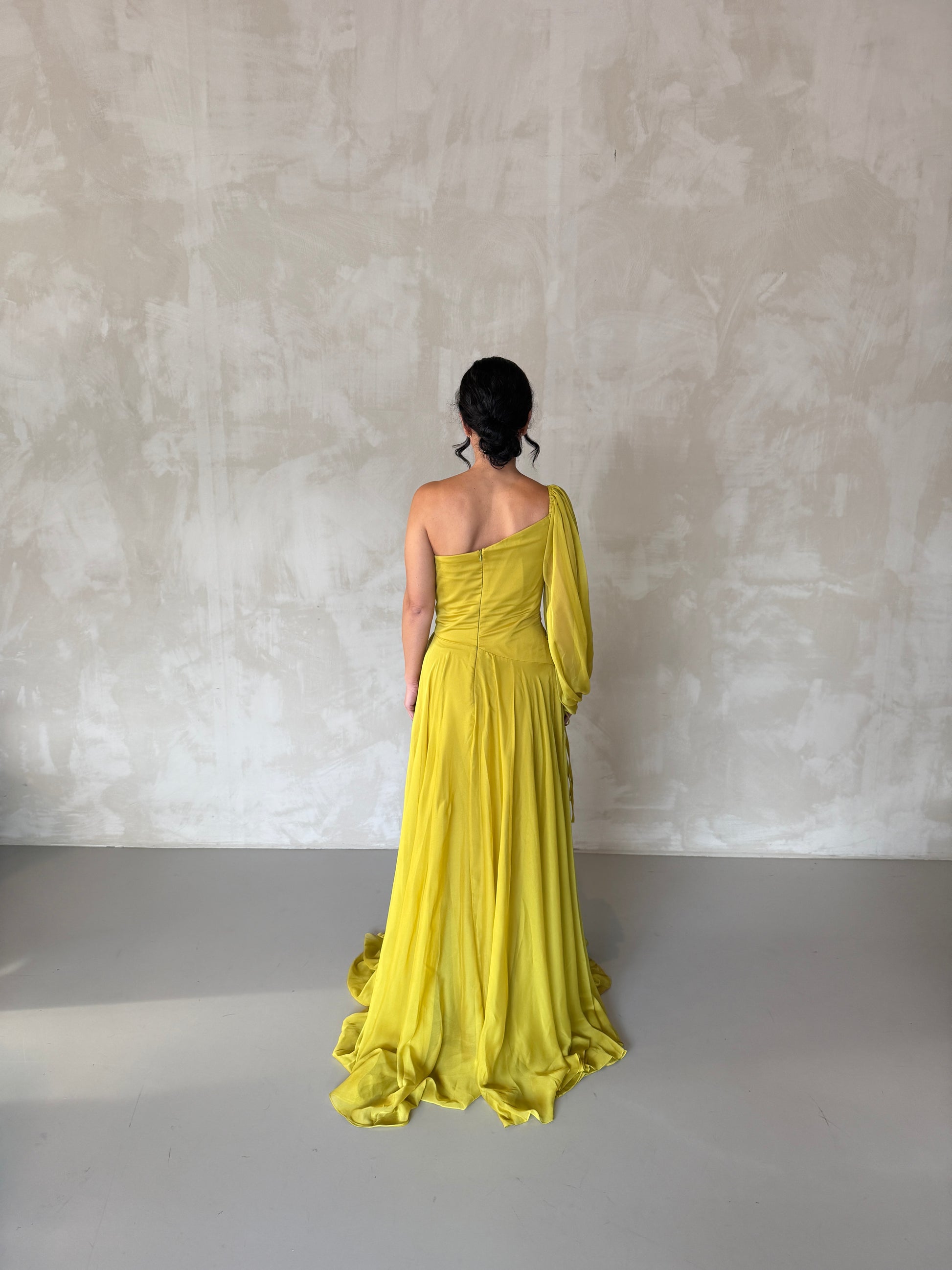 Turn heads in this stunning mustard yellow evening dress, featuring delicate tulle on a single sleeve for a modern, feminine touch. The flattering silhouette and flowing design make it perfect for weddings, summer parties, and formal events. Elegant, vibrant, and effortlessly chic, the Golden Hour Dress combines unique detail with timeless style for any special occasion.